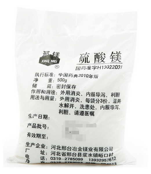 | 用法用量 | 1.导泻:每次口服5-20g,一般为清晨空腹服,同时饮100-400ml水,也可用水溶解后服用;2.利胆:每次2-5g,1日3次,饭前或两餐间服。也可服用33%溶液,每次100ml;3.抗惊厥、降血压等:肌注25%溶液,每次4-10ml;或将25%溶液10ml用5%-10%葡萄糖注射液稀释成1%或5%浓度后静滴;治心绞痛可将10%溶液10ml用5%-10%葡萄糖注射液10ml稀释后缓慢静注,每日1次,连用10日。 |
