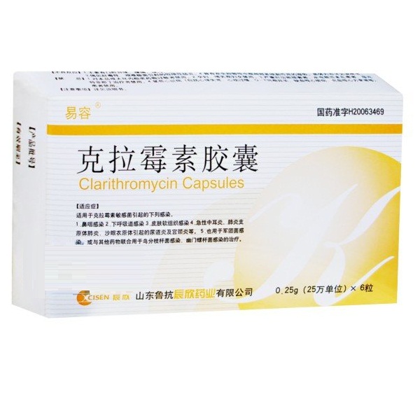 功能主治:适用于克拉霉素敏感菌所引起的下列感染。